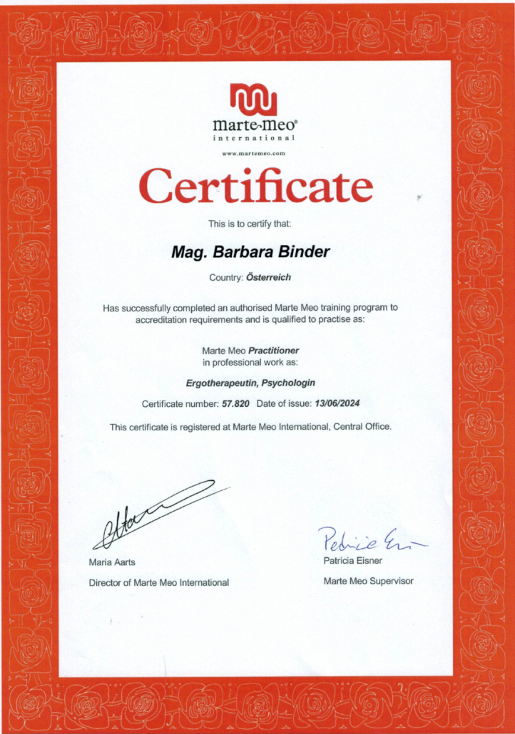 Ich liebe die therapeutische Arbeit nach Marte Meo und es ist so eine erfolgreiche und wertschätzende Möglichkeit Eltern in der Kommunikation mit ihren Kindern zu unterstützen und anzuleiten.